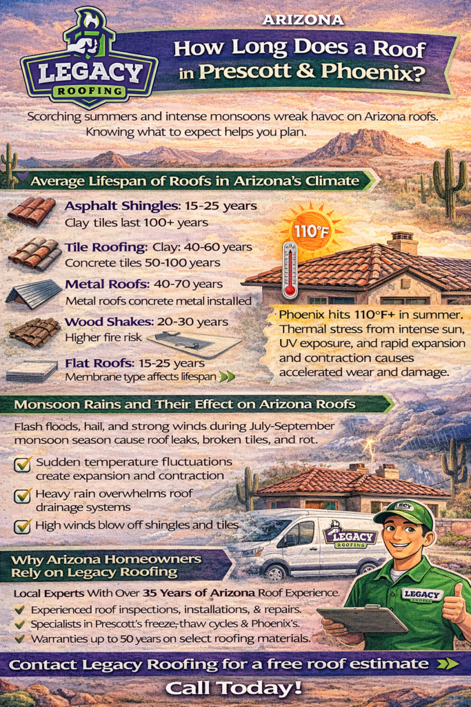 Legacy Roofing brings over 35 years of specialized experience with Arizona’s climate. Our team understands the specific performance characteristics of different materials in Prescott’s high desert and Phoenix’s Sonoran Desert.